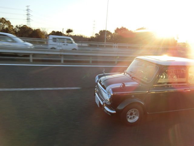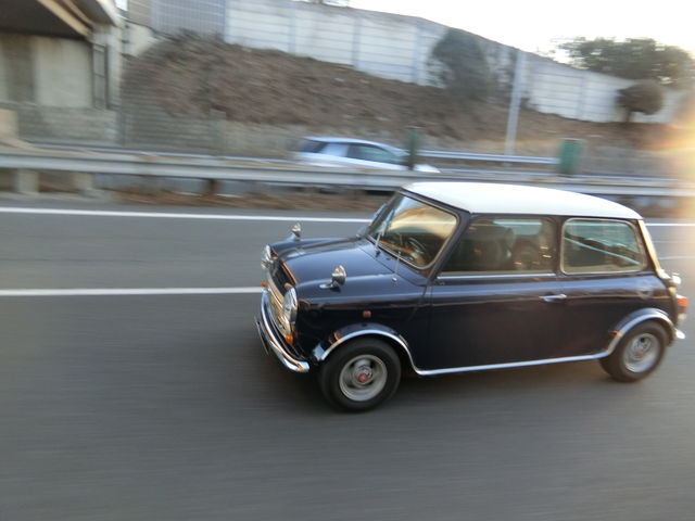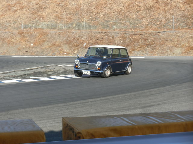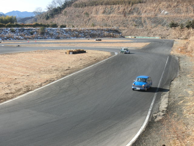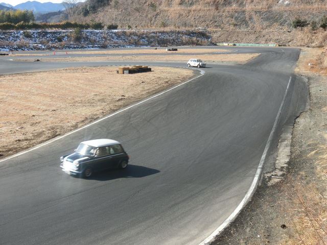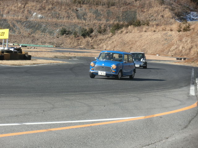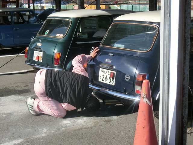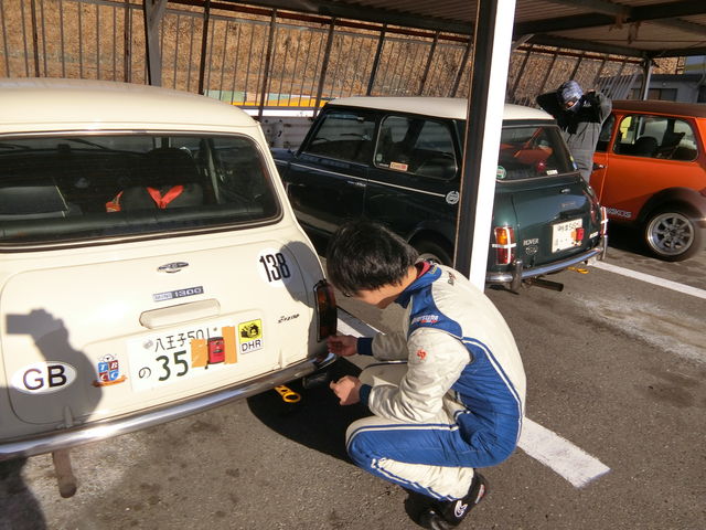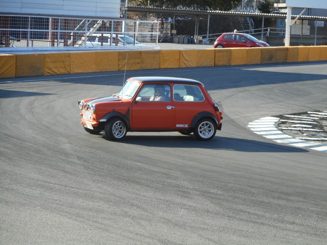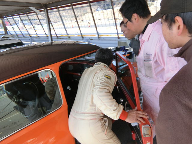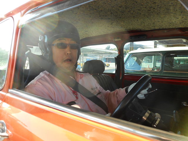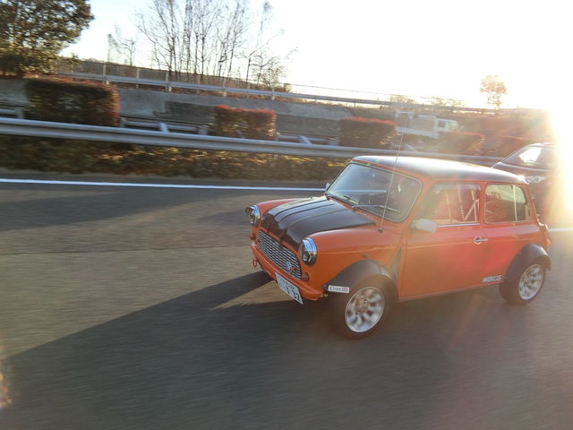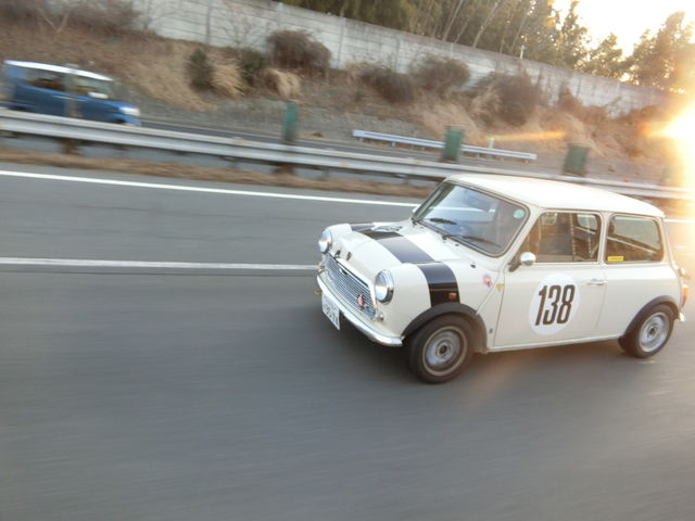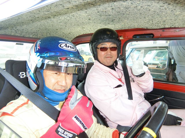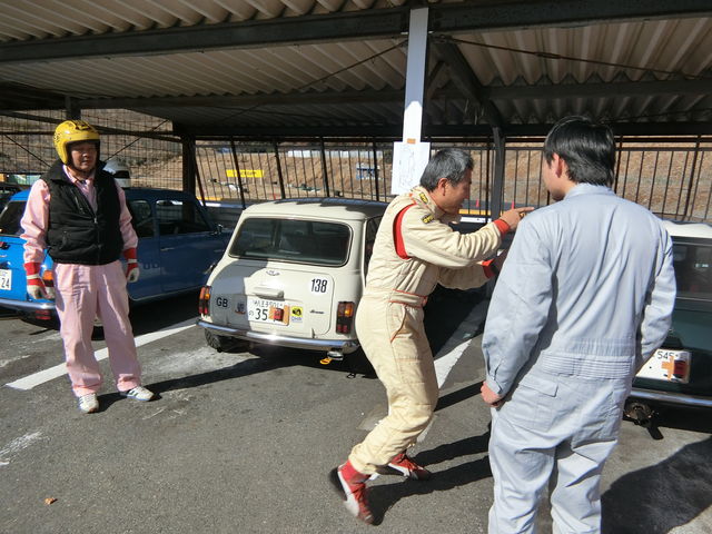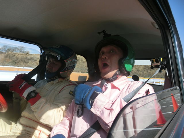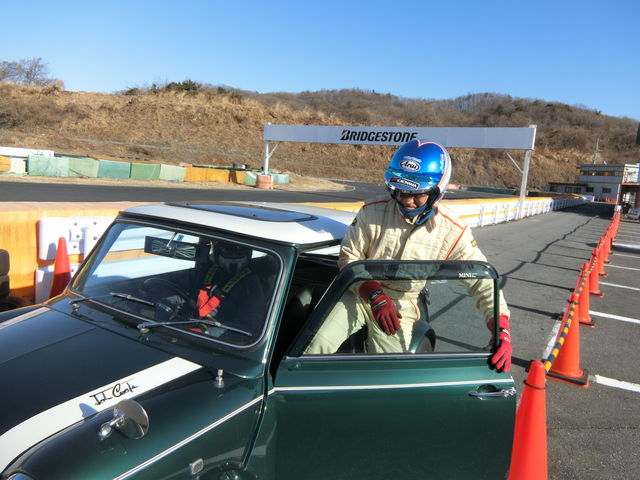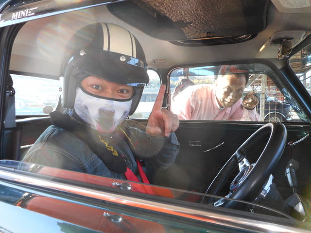 クルセイダー選手のミニを運転しながら指導する斉藤師匠。