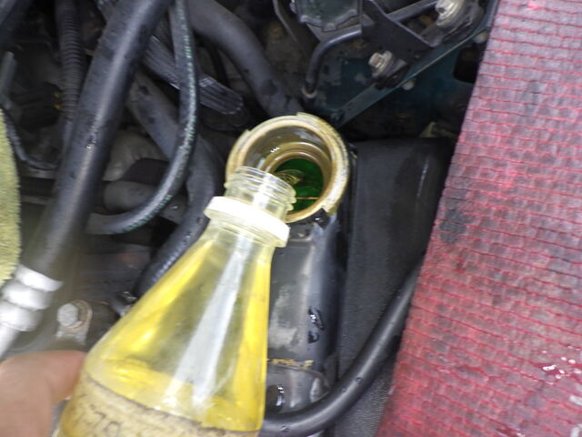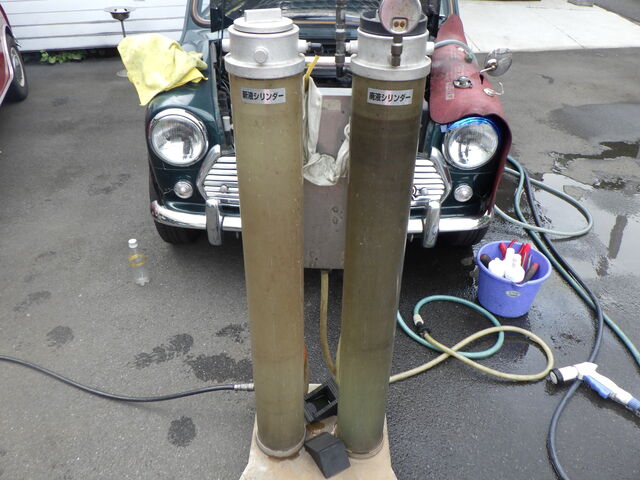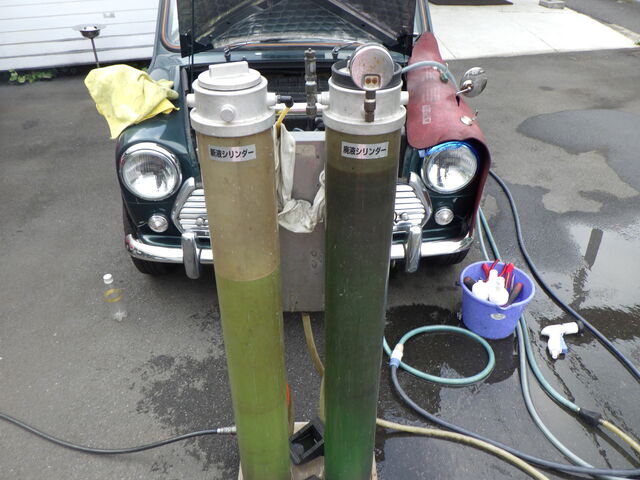 ラジエーター(右)とヒーターコア(左)からの逆流水も綺麗です。