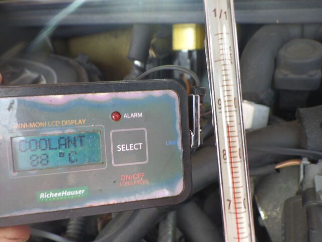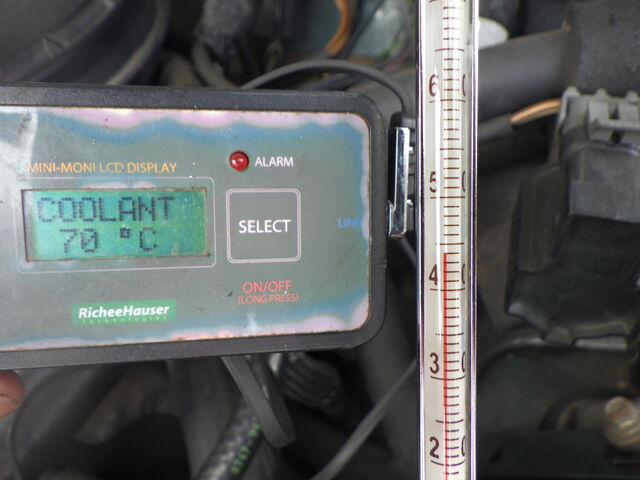 水温センサーは 70 度を示していますが、ラジエーター内の水温は 44 度です。
