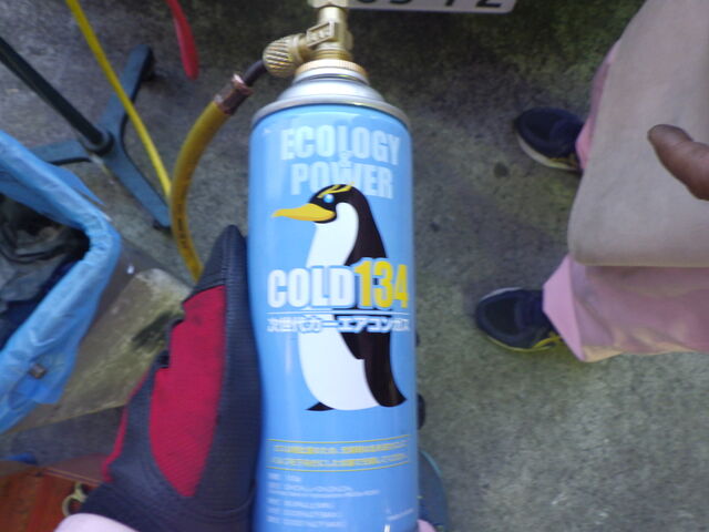 じゃ、クーラーガスも入れ替えます。。。
