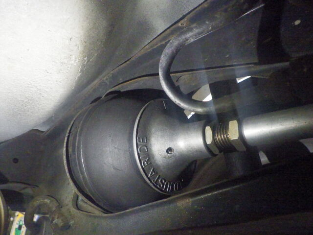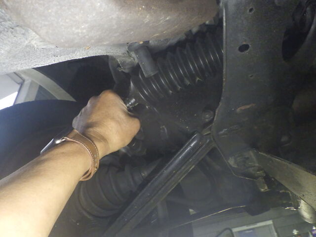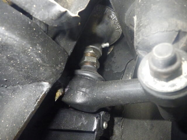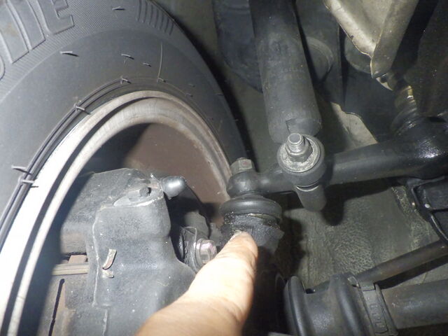 左のタイロッドを上下に揺するとコトコトと振動を伴う音が聞こえます。。