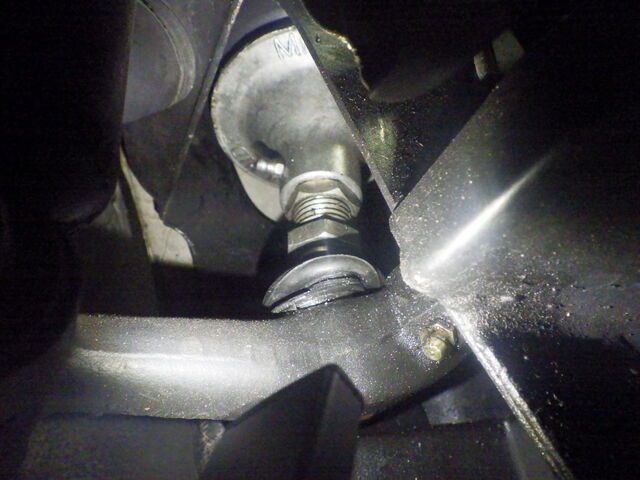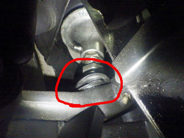 ナックルジョイントのボールがアッパーアームの穴に直接当たってしまってる状態ですので
