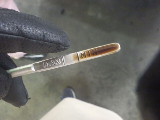 交換前のオイル量ですが、一見良さそうに見えますが、YMM 様ご自身で 300cc 程補充されたとのこと。
