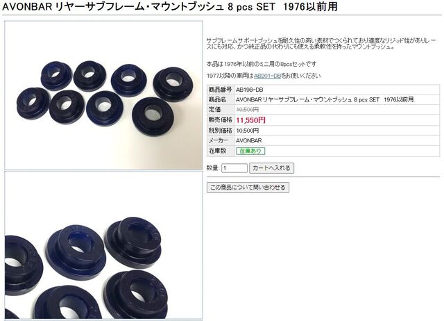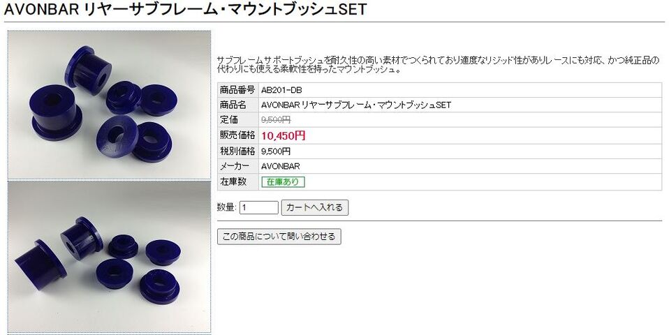 今回リアサブフレームに使うマウントはエイボンバーのマウントブッシュセットヽ( ´ー`)ノ