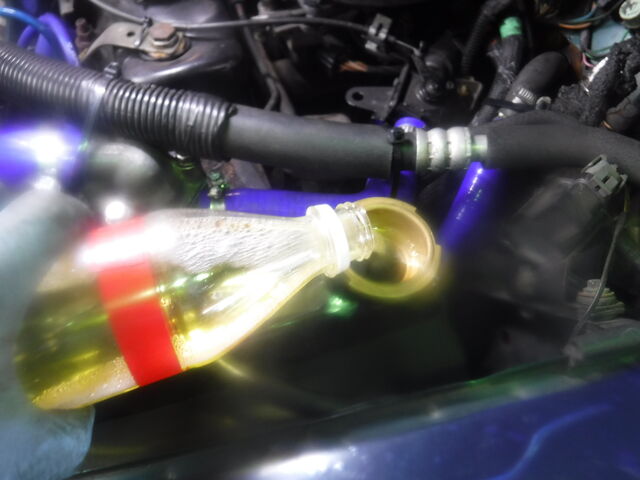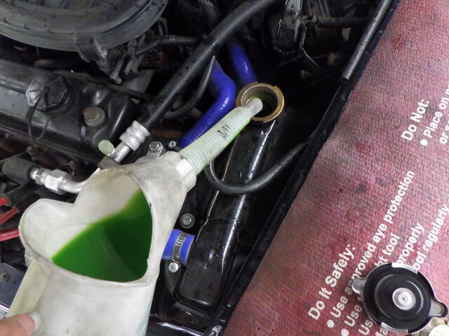 2リットル入りのジョッキでラジエターに水を入れたら・・