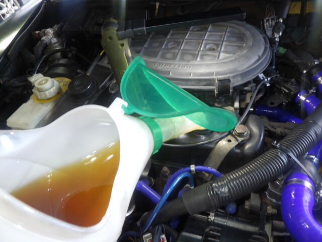 交換するオイルに硬めのものを混合することで、交換直後の粘度低下を防ぎます。