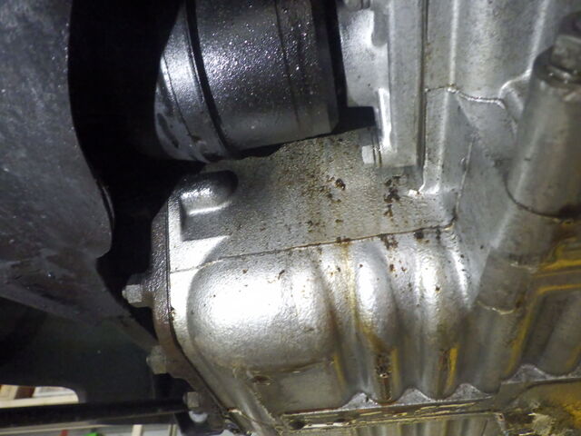 進行方向左のタイミングカバー側からのオイル漏れが多いです。。