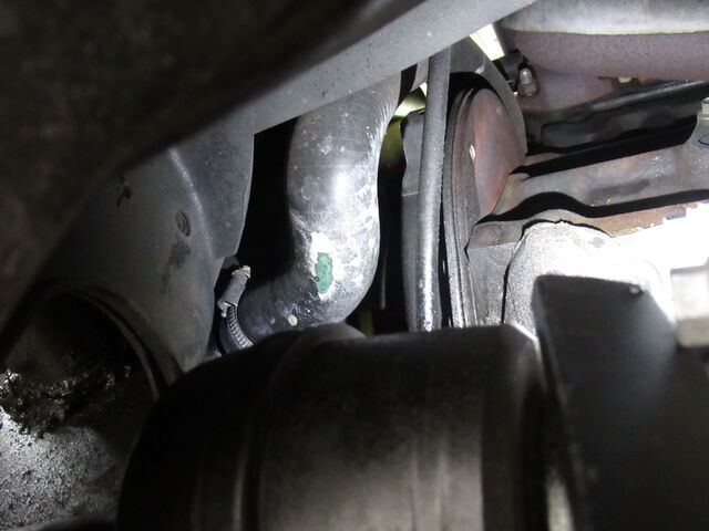 ラジエーターロアホース付け根に漏れ跡あり。