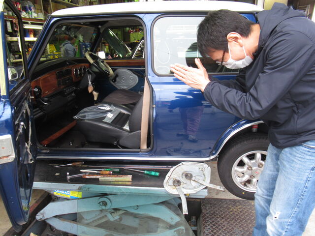今回はオイル交換の他に「愛する妻のために窓の開閉を快適にしたい!」とトリムまで外してご来店です^^