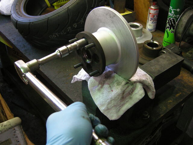 ハブとディスクは緩み止めを塗布してトルク管理します。