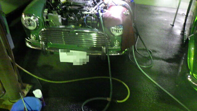 エンジンを掛け、洗浄しつつサーモスタットの開閉、電動ファンの動作