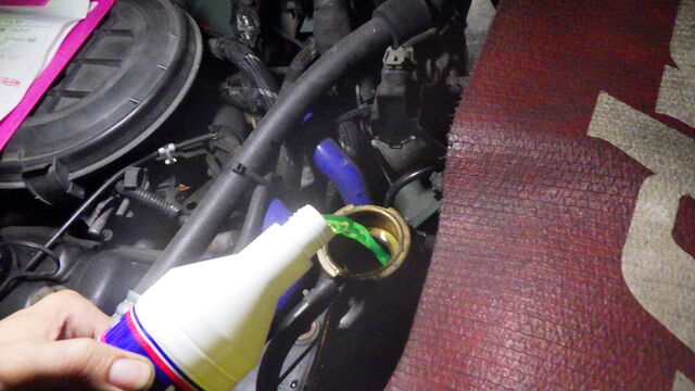 LLC入れていきます、つまりがないためラジエーター内部への飲み込みは良好です