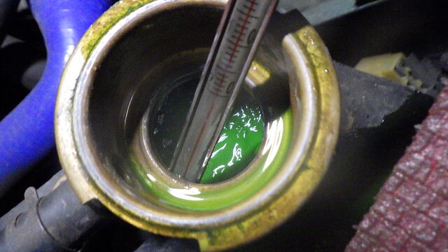 サーモスタットは88℃で開きましたラジエーター内に勢い良く水が流れ込んで来ます、