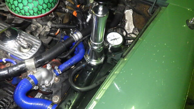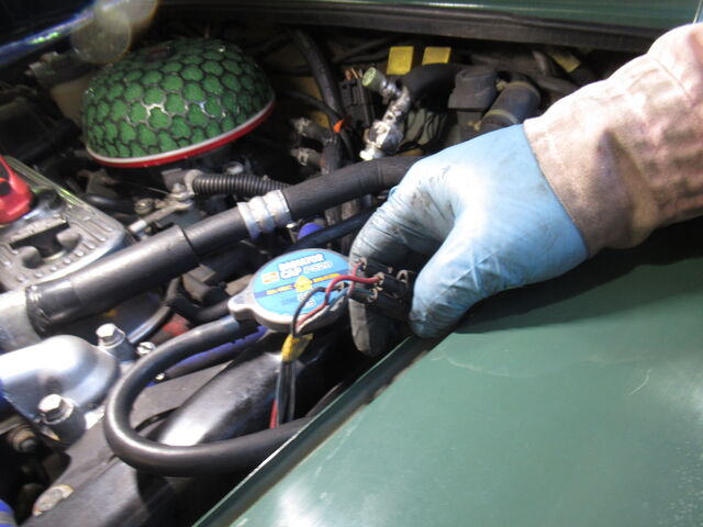 サーモスタットの交換とクーラントを補充したので加圧して漏れが無いかチェックします、