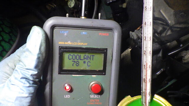 サーモスタットが開いたのでセンサーと水温計の差を確認します