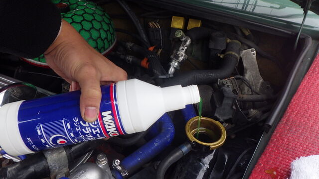 ラジエーターの洗浄剤ラジエーターフラッシュを入れてエンジン回します