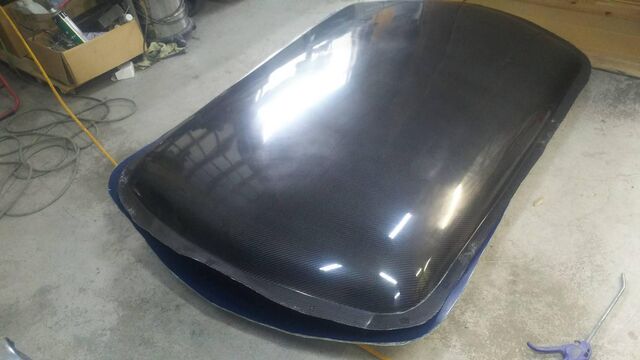 ボディとの当たり調整可能なように窓枠部分はオリジナルの金属製を残して表と裏のパネルをカーボン化する計画です。