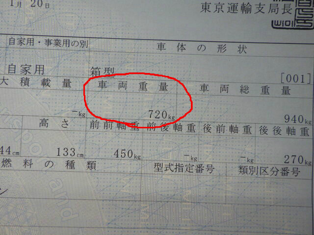 車検証の体重より軽いのスペアタイヤ積んでないのとガソリンが少ないから・・・?