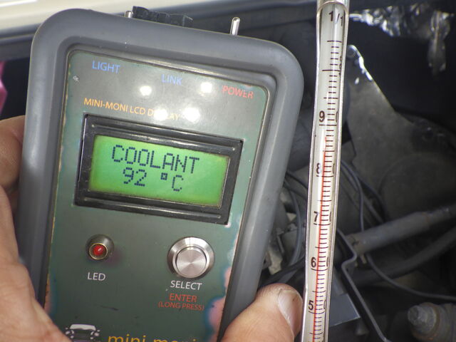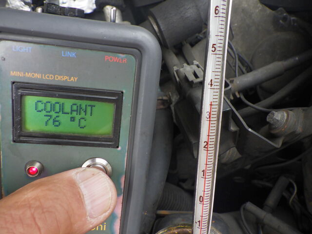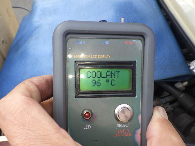 エンジン側の水温センサーとラジエターに挿した温度計を比較しながらスリーチェック開始です