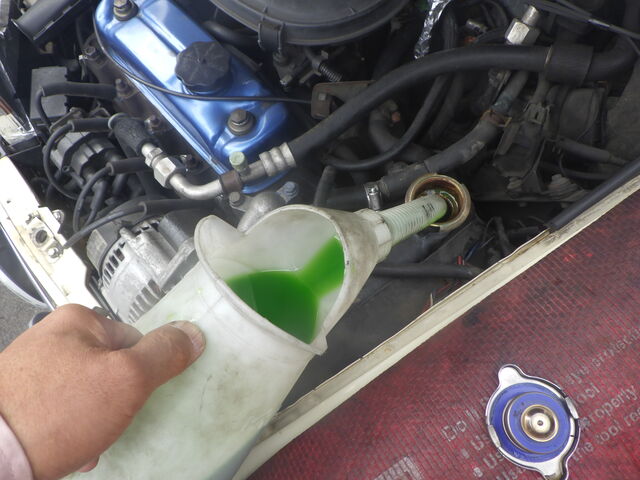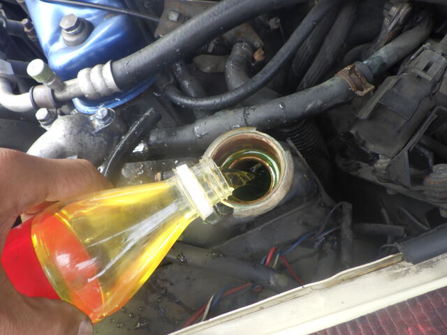 ラジエターフラッシュ入れてエンジン始動で洗浄開始