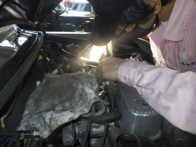 エンジンルーム向かって左側、タイミングチェーン側のブローバイホースは、やはり外すのに少々苦労しました・・・。