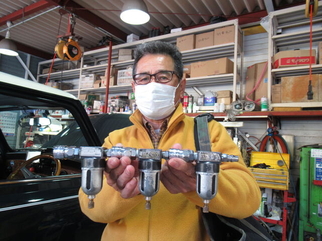 Niko選手の年式はブリーザーホースにワンウェイバルブが付いています。
