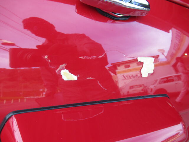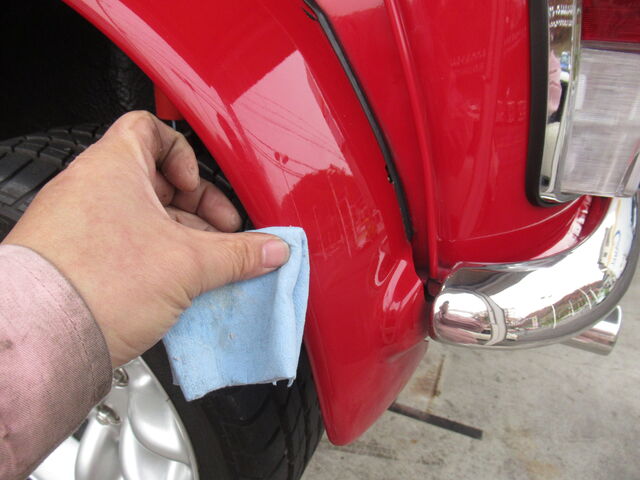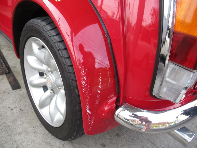 左リアのオーバーフェンダーは擦って白いペイントは落とせました。
