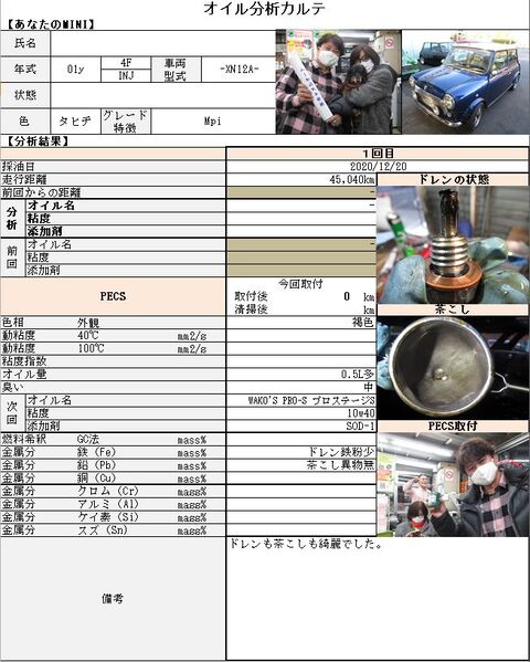 今回初キャメルオイル交換だったのでオイルカルテを作りました。