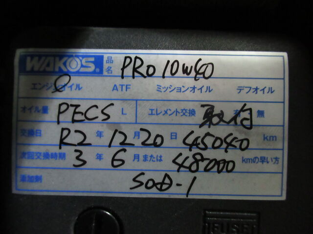 次回のオイル交換は来年の6月か48,000kmでお願いします。