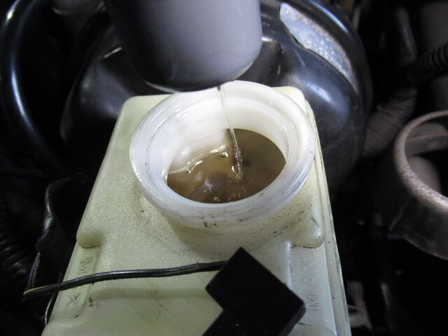 ブレーキ・クラッチフルード量はokですが変色が進んでいます。