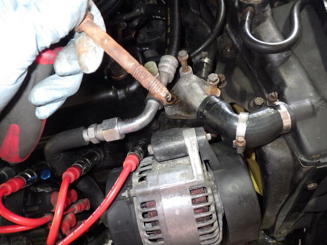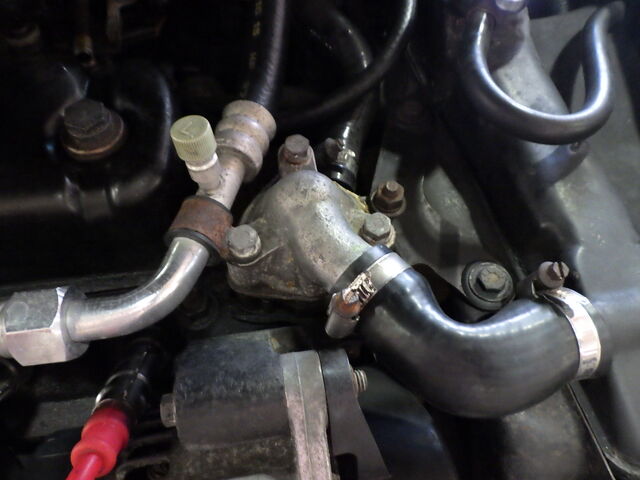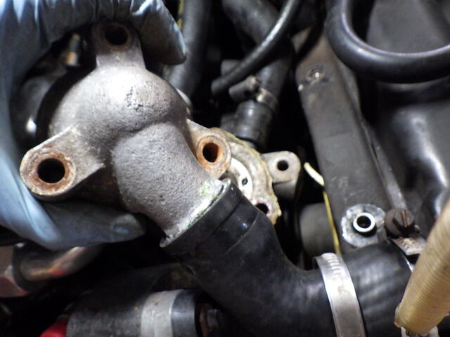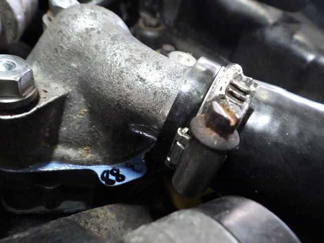 サーモハウジングを止めいていたボルトは真っ赤に錆びていました、これは交換します。