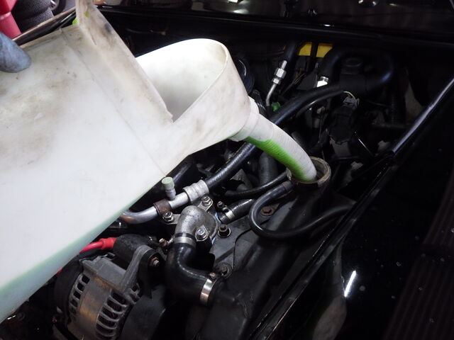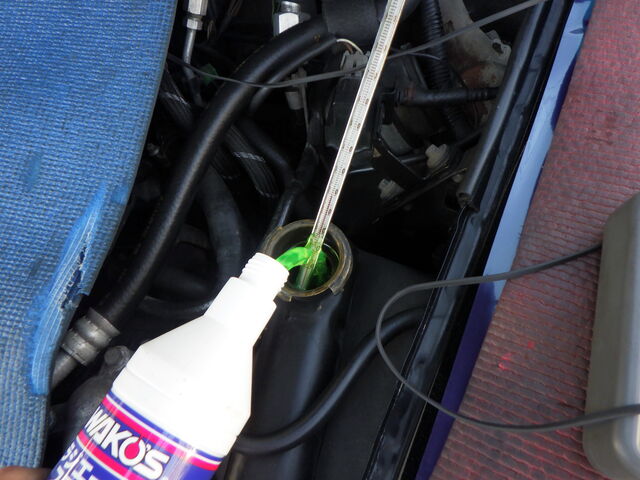 サーモスタッドの交換が終わりましたので、LLCとクーラントブースターを補充しました。
