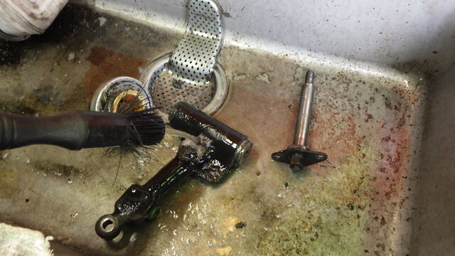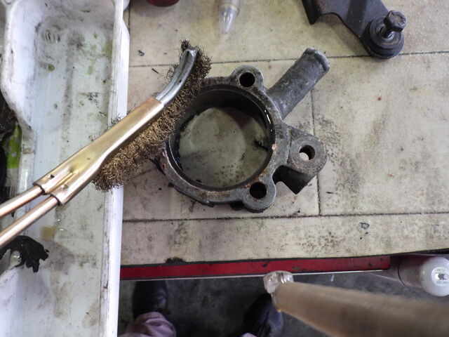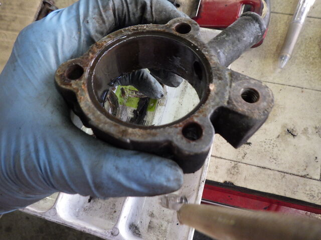 取り外したハウジングは古いガスケットを取り除ききれいに磨きます。
