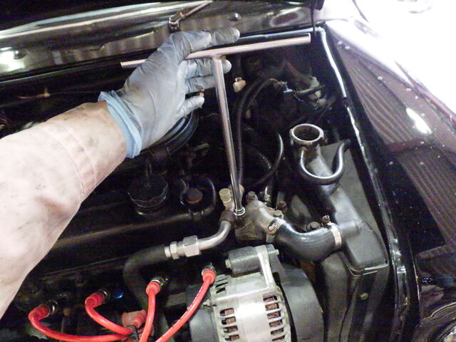 交換するため、冷却水を抜きます。