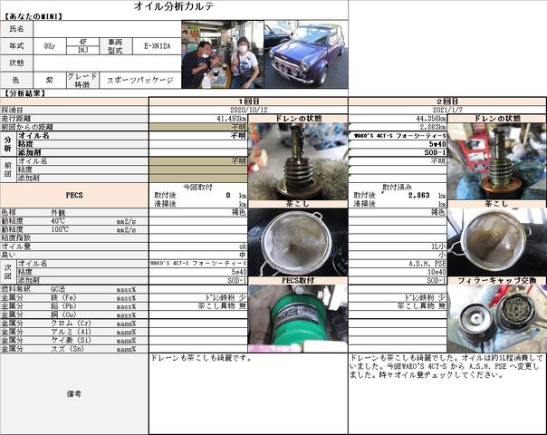 去年の10月にオイル交換で初キャメルだったASM様。