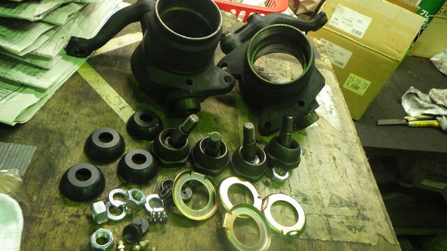 納車整備の定番メニューの、水廻り一式交換、足回りはハブベアリング、ボールジョイント、ブレーキ一式交換させていただきます。