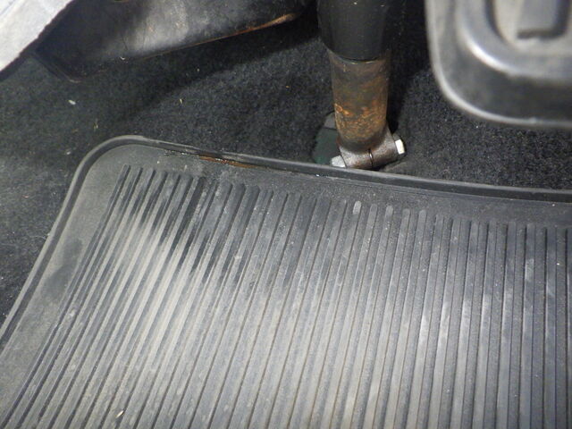 室内を見ると、クラッチべダルの下のフロアマットにフルードらしき液体が垂れた形跡がありました。。。