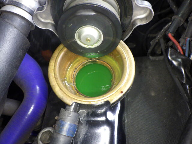 エンジンもそれなりに冷めたので LLC を点検、ラジエターは OK ですね。
