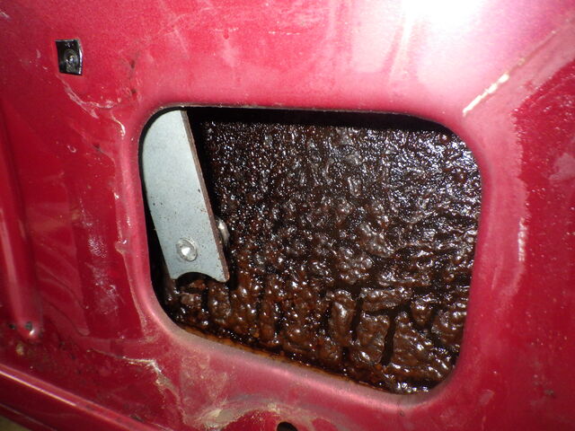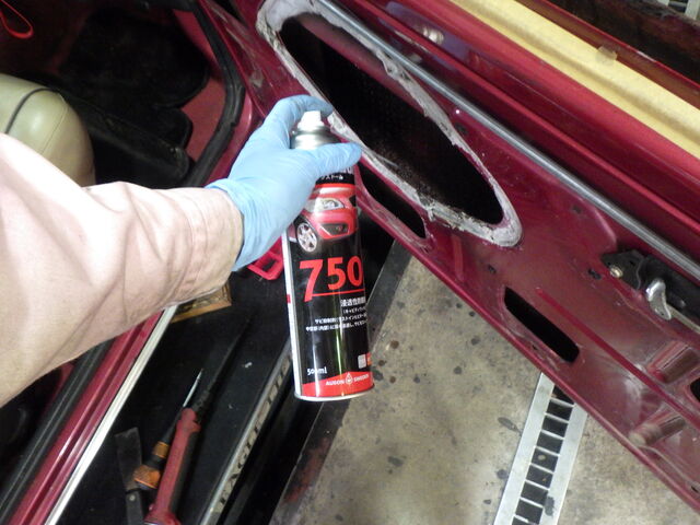 そして、ドアの裏にはノックスドールを吹き付けこちらもサビの発生を抑えます。