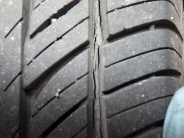 下回りの点検中タイヤにヒビがあるのを確認しました、経年劣化でのヒビのようです。