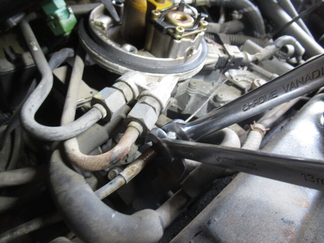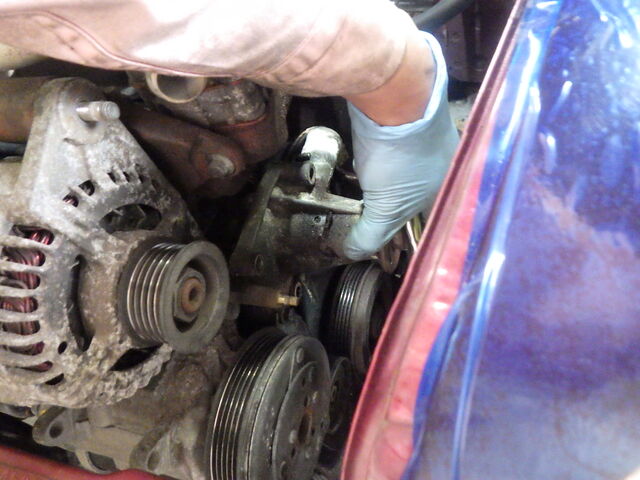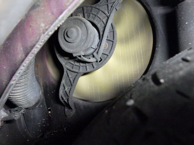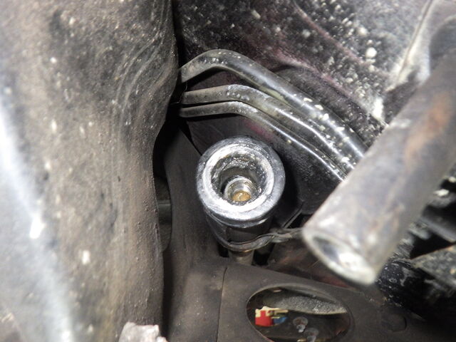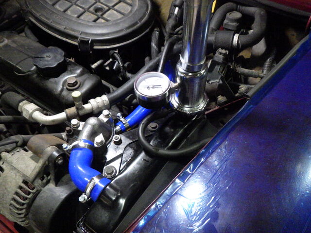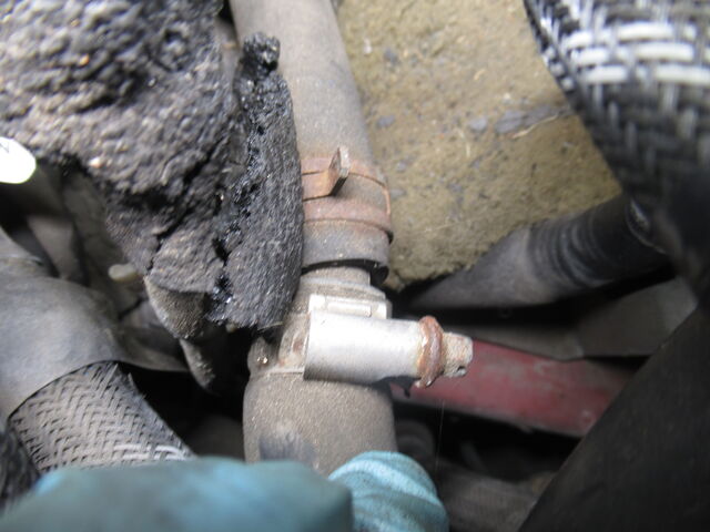 純正のままの樹脂製が付いていますが、突然折れて噴水の様に吹き出してきますので今のうちに金属製に交換オススメです。