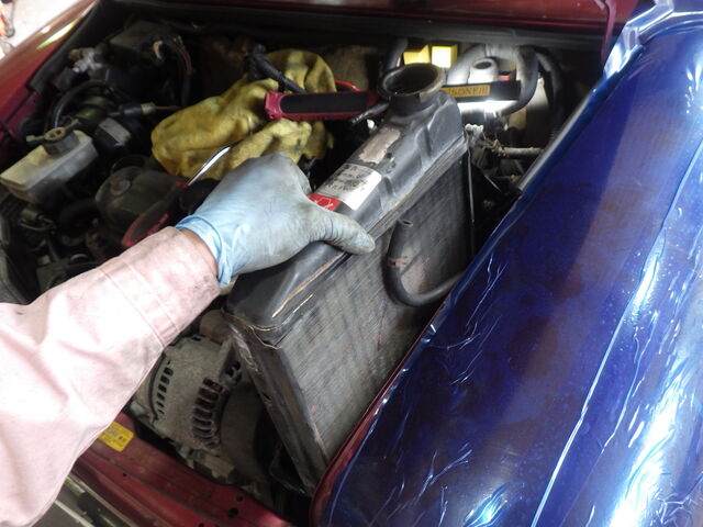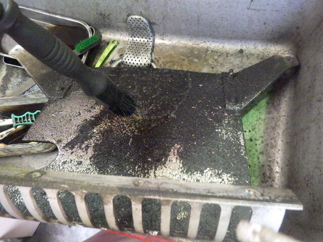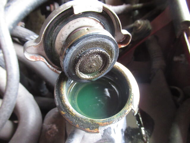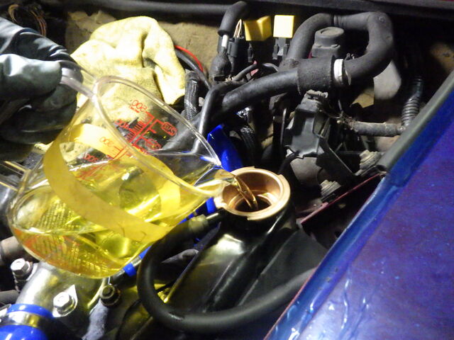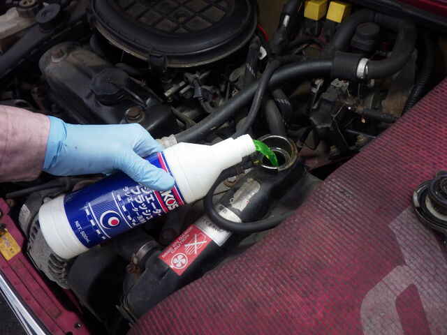 ラジエターに水路の洗浄剤ラジエターフラッシングを投入し、暖気しながら水路の洗浄を行います。