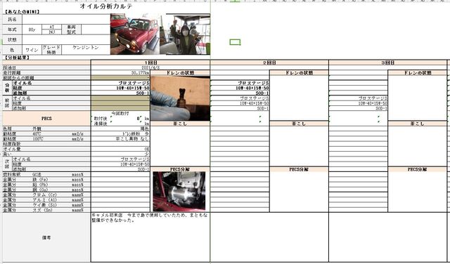 今回から、廃油やドレンボルトの状態からエンジンの健康度を観察するオイルカルテを記入していきます。