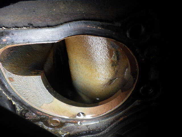 ウオーターポンプの内側、エンジン内の水路はサビも多くなくとても綺麗です。