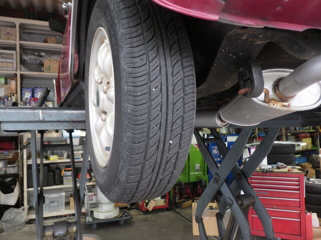 ステアリングからホイールにつながっている棒のタイロッドを新しくして足回りのガタガタコトコトを解消します。