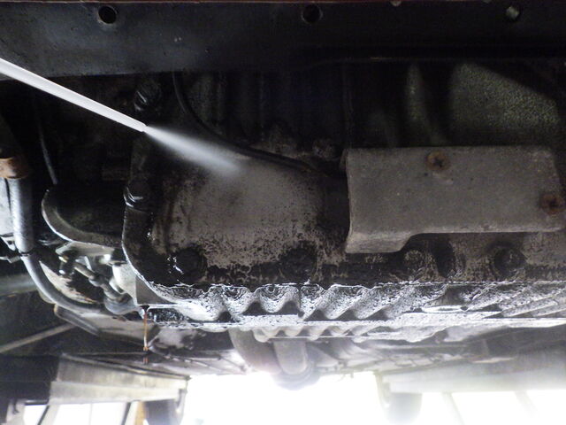 オイル交換のためリフトアップしましたが、長らく溜まった油汚れでミッションケースがドロドロです、、、 これはお掃除のしがいがありそうです。