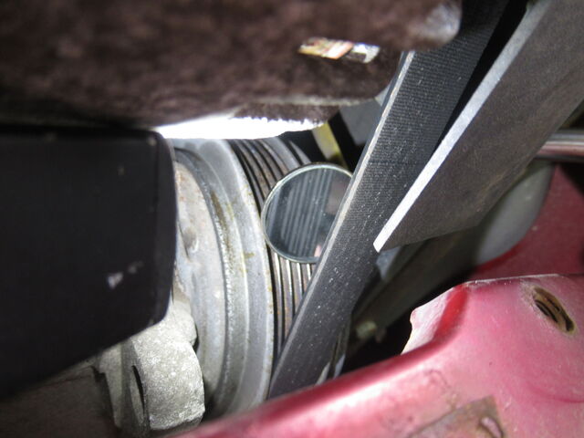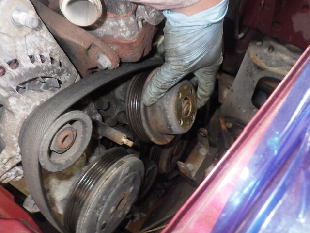 どうやらウォーターポンププーリーが変形又は割れている様です。