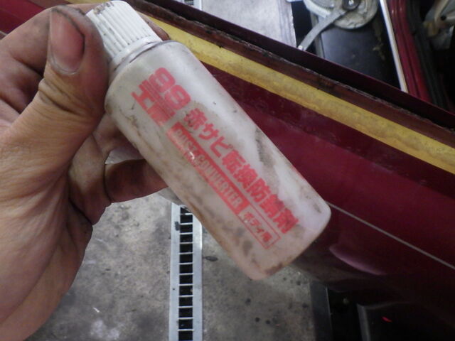 水切りモールの裏のサビはサビチェンジャーで黒錆化しサビの進行を抑えます。
