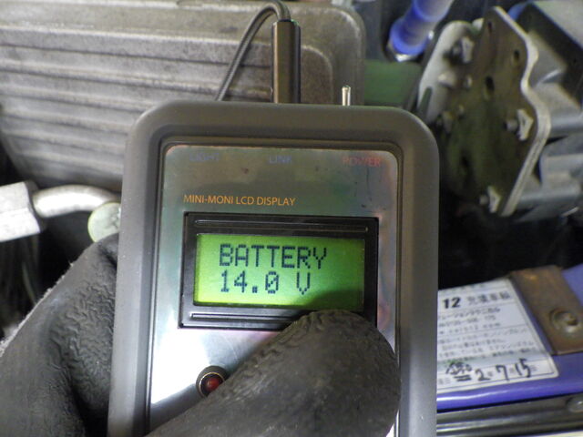 スターターモーター端子部の電圧は 14.1 V 、オルタネーターは正常の様です。
