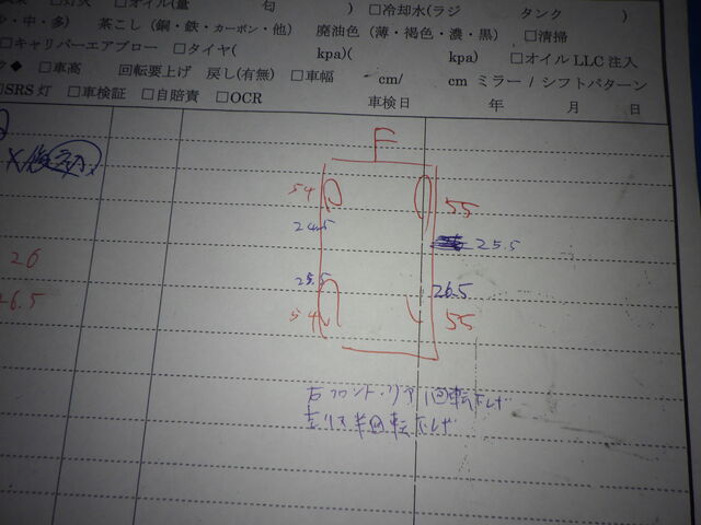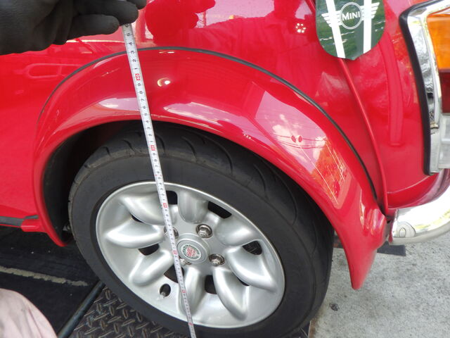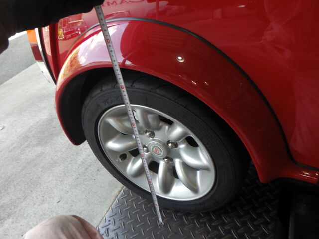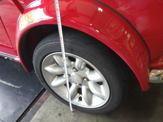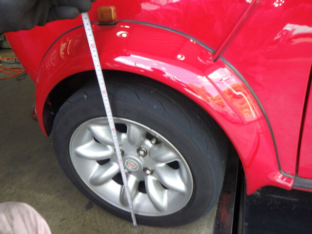 まずは左を基準に右フロント・リアを 1cm づつ下げてみます。